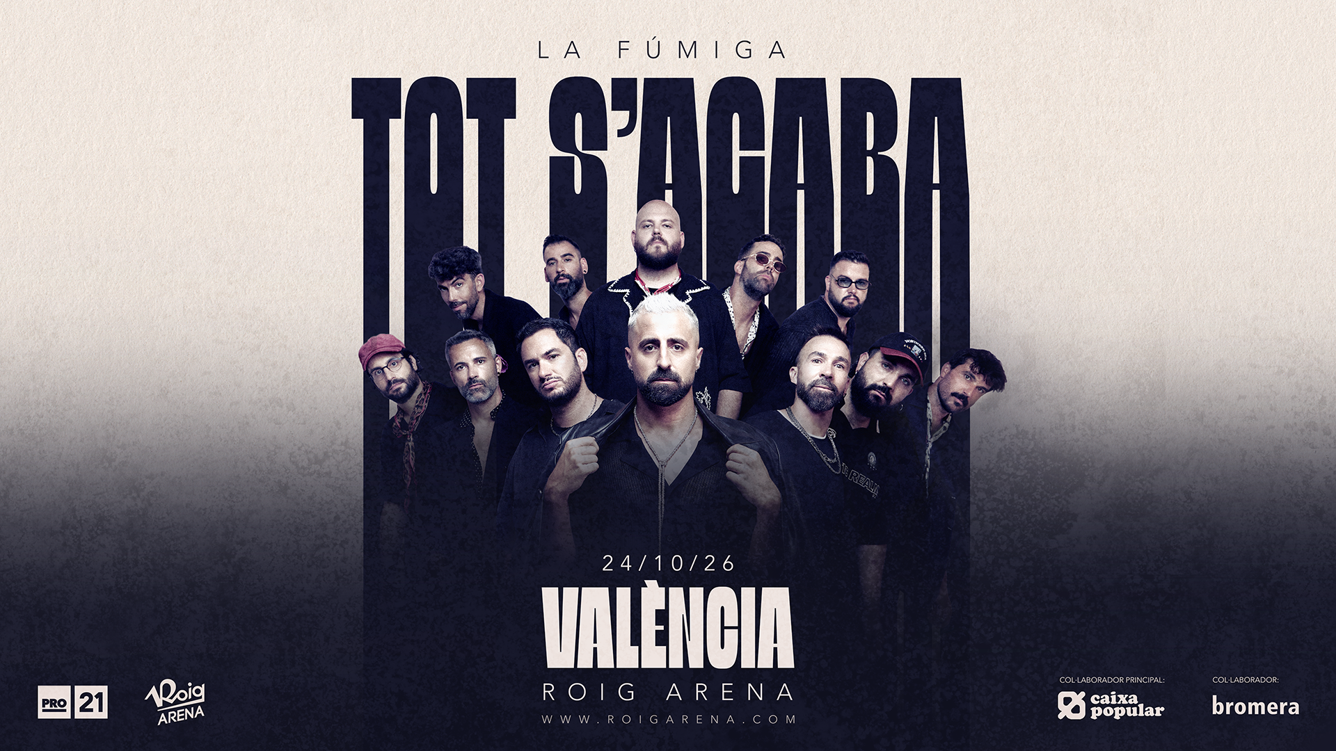 Valencian band La Fúmiga has announced they will say farewell to the stage on October 24, 2026 with a concert at Roig Arena, the new multipurpose venue in Valencia promoted by Juan Roig. The group is one of the most prominent names in contemporary Valencian music, with thirteen years of career, 500 concerts, a long list of hits, and two gold records.