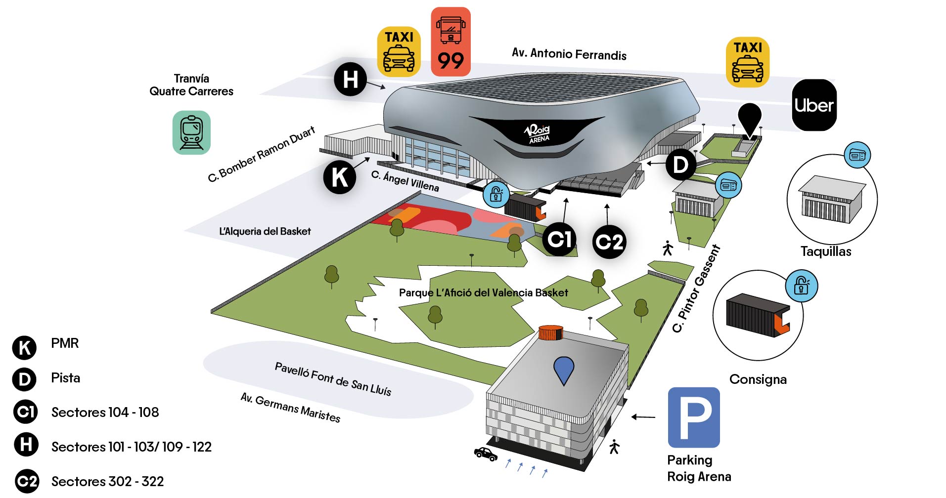 Descubre todas las opciones para llegar al recinto y toda la información de nuestro parking haciendo clic aquí.