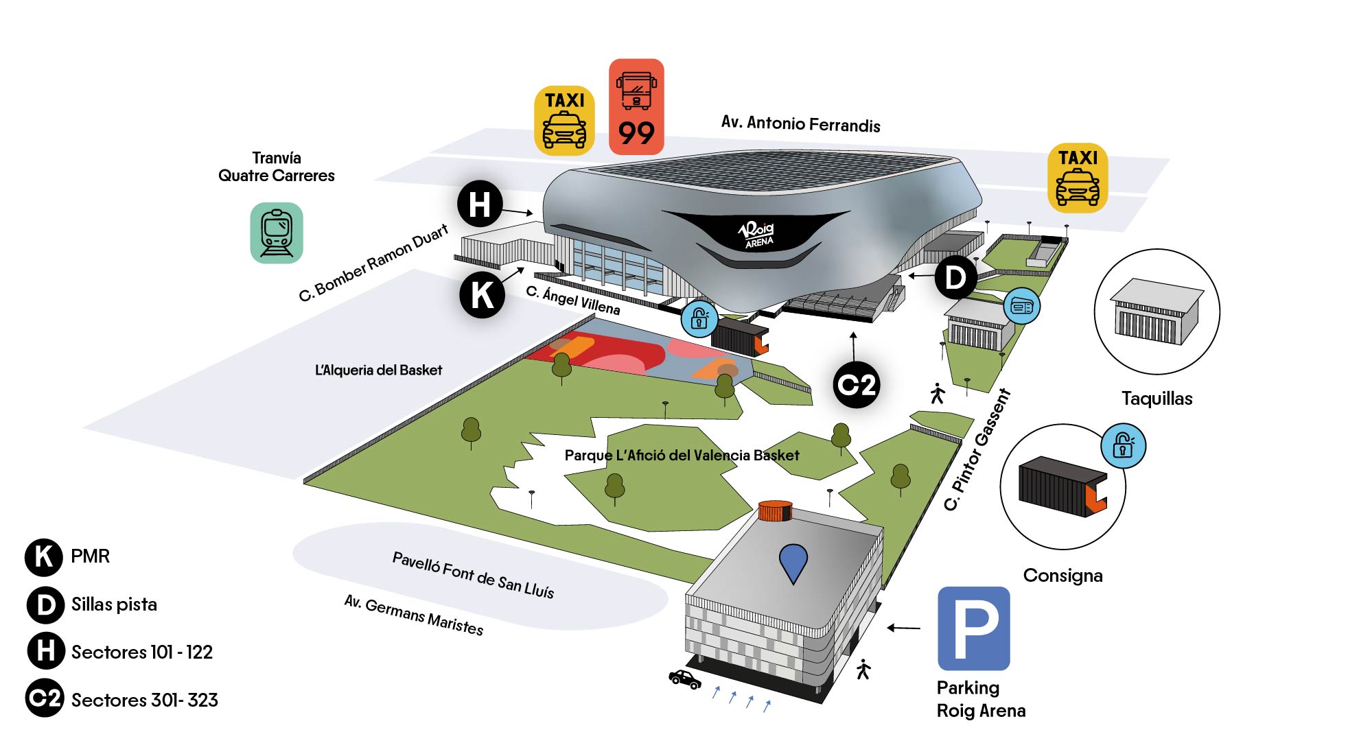 Descubre todas las opciones para llegar al recinto y toda la información de nuestro parking haciendo clic aquí.