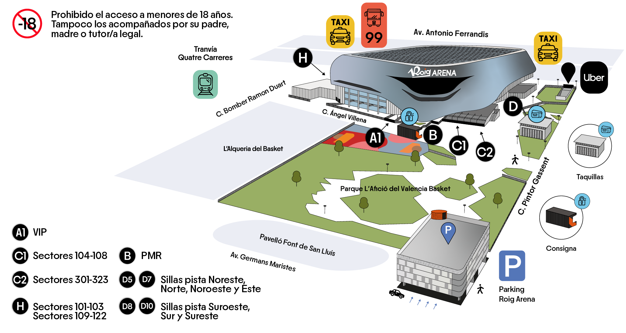 Consulta tu puerta de acceso en el mapa del recinto de tu entrada.