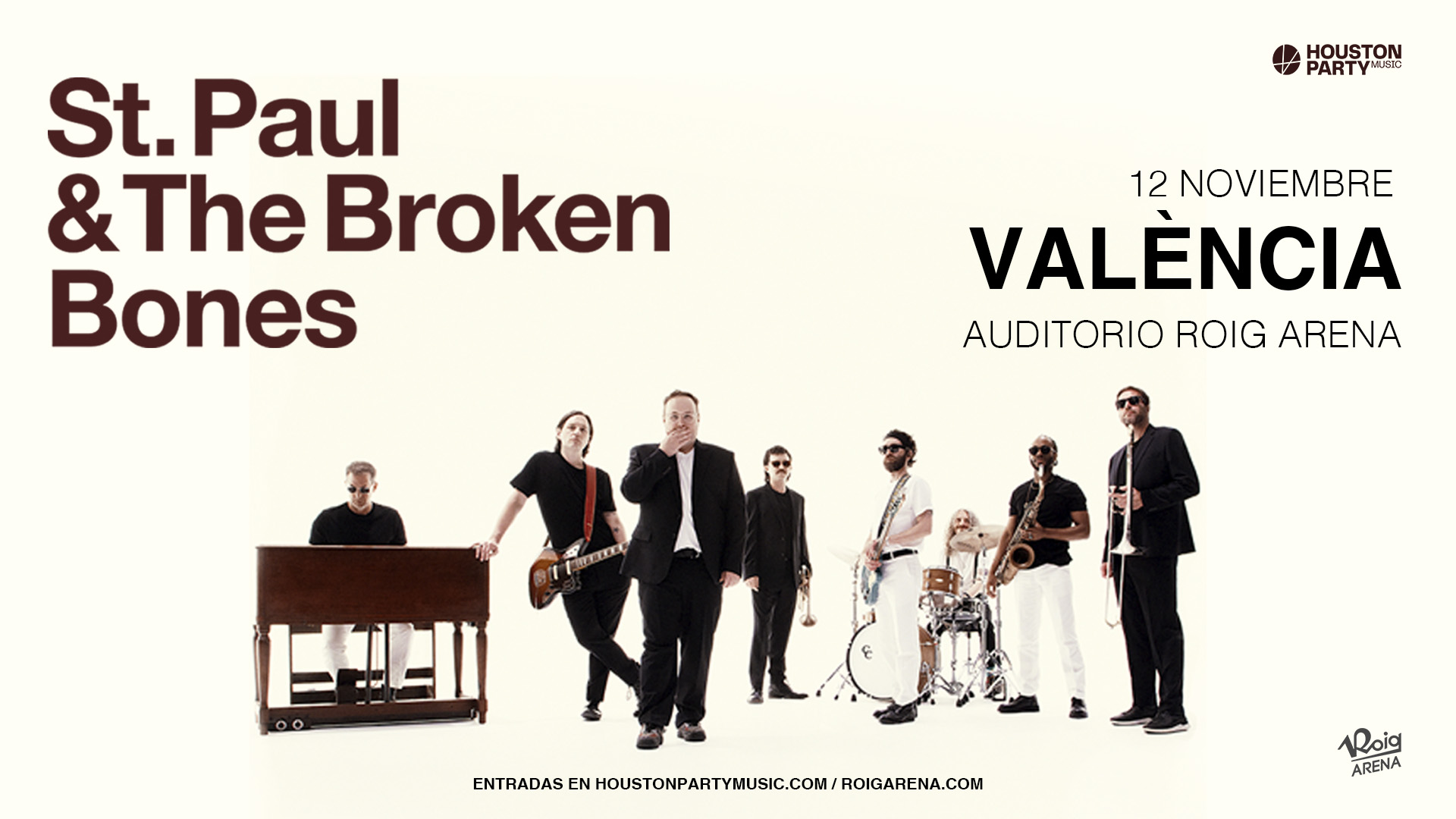 La formación St. Paul & The Broken Bones actuará en la sala Auditorio Roig Arena el próximo 12 de noviembre. Formados en Birmingham (Alabama) en 2011, la banda de soul ofrece poderosas actuaciones actuaciones en directo cargadas de emoción. El grupo está conformado por Paul Janeway (vocalista), Jesse Phillips (bajo), Browan Lollar (guitarra), Kevin Leon (batería), Al Gamble (teclado), Allen Branstetter (trompeta), Chad Fisher (trombón) y Amari Ansari (saxofón).