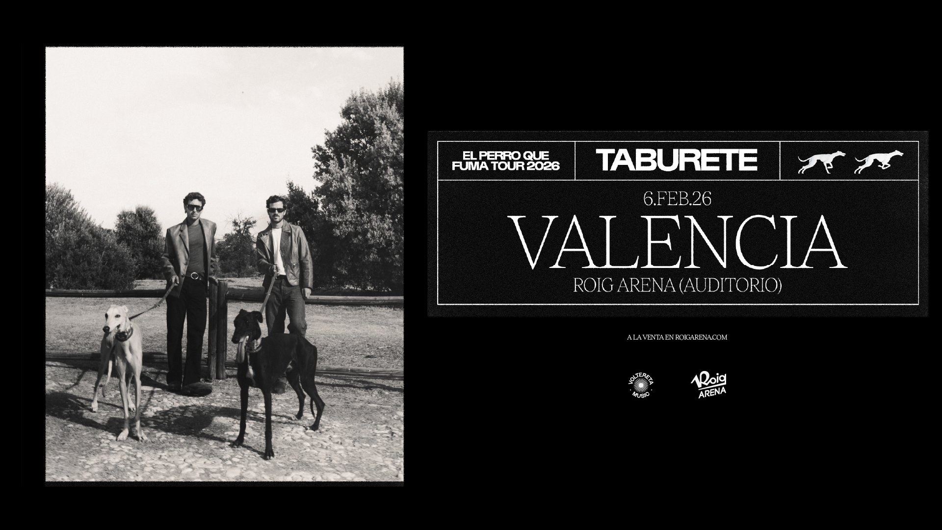 Taburete actuará el 6 de febrero en el Auditorio Roig Arena, el nuevo recinto multiusos de Valencia impulsado por Juan Roig. El grupo lanzará el próximo 28 de noviembre su nuevo disco “El perro que fuma”, cuyos temas interpretarán en el recinto valenciano.