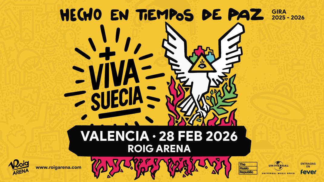 La banda murciana Viva Suecia debutará el 28 de febrero en el Roig Arena, el nuevo recinto multiusos de Valencia impulsado por Juan Roig. El grupo inicia una nueva etapa con su nuevo álbum “Hecho en tiempos de paz”, que se publicará el próximo 10 de octubre.