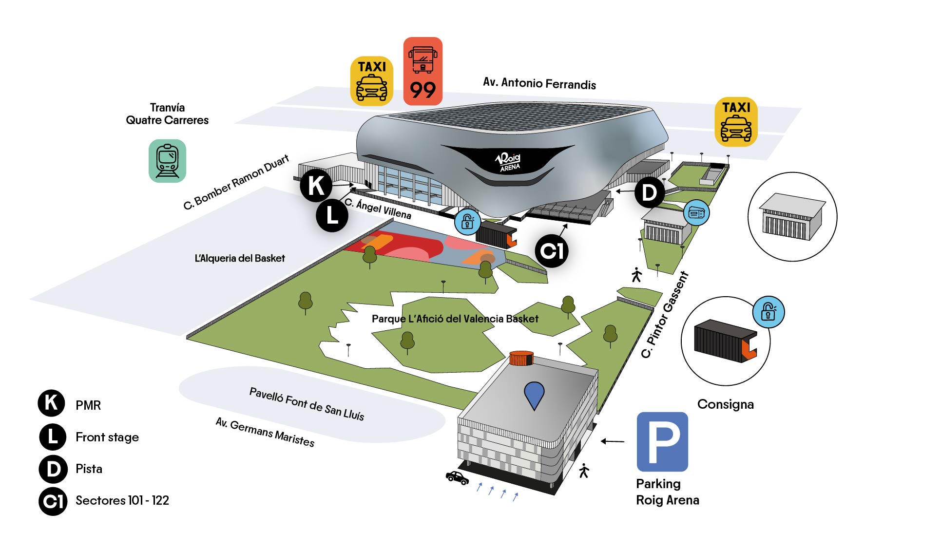 Et recomanem arribar amb antelació suficient al concert i revisar quin és l'accés al qual t’has de dirigir per a entrar al recinte.