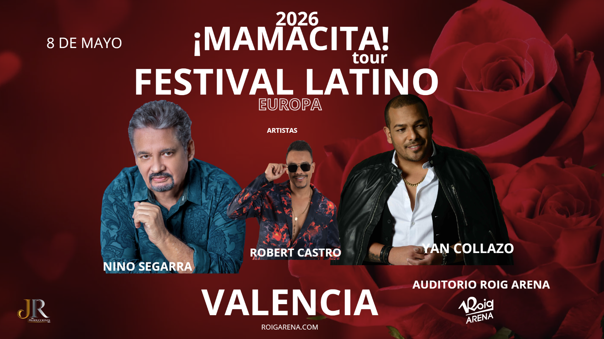 L’Auditori Roig Arena acollirà el pròxim 8 de maig el “Mamacita Tour”, un festival en què els reconeguts cantautors Nino Segarra, Yan Collazo i Robert Castro uniran les seues veus per celebrar els ritmes llatins més emblemàtics.