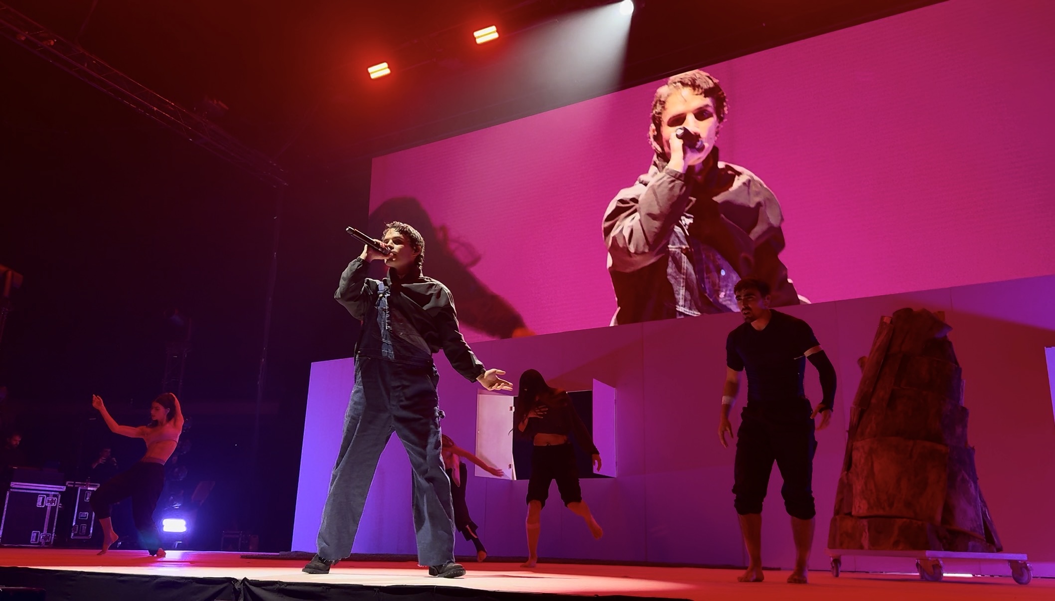 Dividit en tres actes —un per cada treball discogràfic— i en estricte ordre cronològic, el concert ha situat l’artista com a protagonista absolut d’un viatge musical al seu passat emmarcat en una proposta amb un fort caràcter escènic. Els tons de nostàlgia i melancolia han definit el primer terç del recital, en què Senra ha entonat temes com “No quiero ser un cantante”, “Blue jeans y un crop top” o “Completamente loco”, tots ells pertanyents a “L’Origen”. El gallec ha revisitat la innocència de la infància i ha retut un tribut molt personal a les seues arrels, buscant en tot moment eixa connexió emocional amb el seu públic.